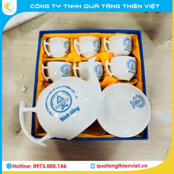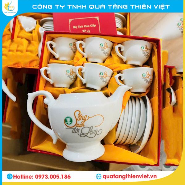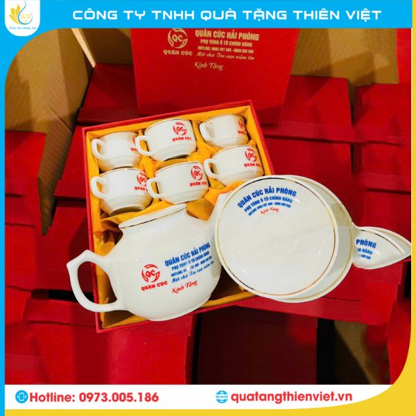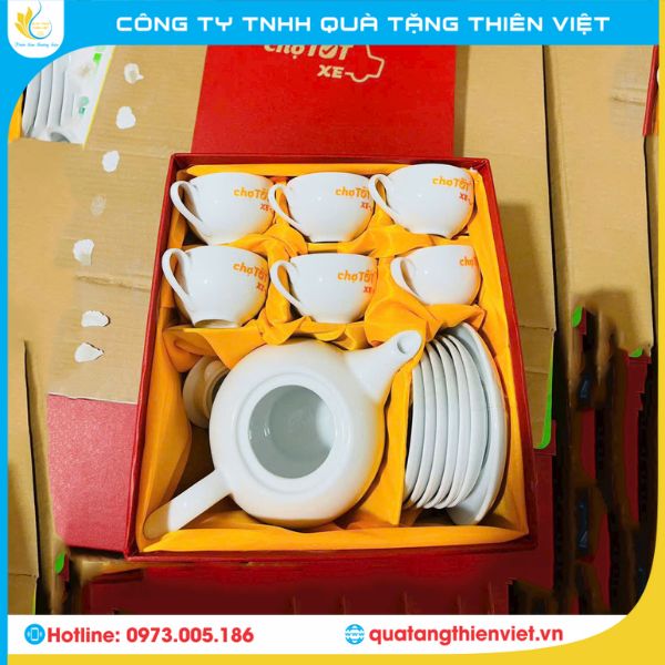 Dịch vụ sản xuất ấm chén in logo tại Bắc Giang của công ty Quà Tặng Thiên Việt sẽ mang đến cho bạn giải pháp quà tặng hoàn hảo với mức phí cạnh tranh nhất. Liên hệ ngay hôm nay để được hỗ trợ nhé!