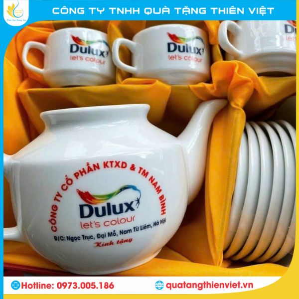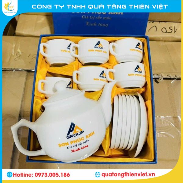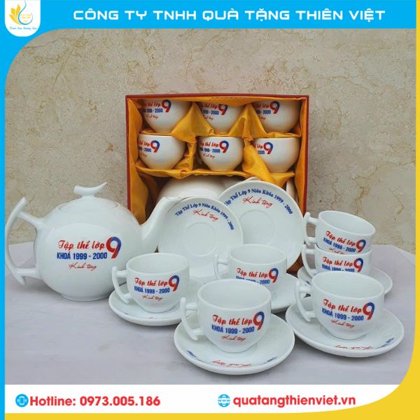 Dịch vụ sản xuất ấm chén in logo tại Quảng Nam của công ty Quà Tặng Thiên Việt sẽ mang đến cho bạn giải pháp quà tặng hoàn hảo với mức phí cạnh tranh nhất. Liên hệ ngay hôm nay để được hỗ trợ nhé!
