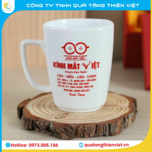 Quà Tặng Thiên Việt chuyên cung cấp dịch vụ in logo lên các sản phẩm quà tặng theo yêu cầu của khách hàng. Trong đó, dịch vụ in logo lên cốc sứ được đặc biệt ưa chuộng và phát triển mạnh mẽ. Với kinh nghiệm và uy tín đã được khẳng định, Quà Tặng Thiên Việt tự tin mang đến cho khách hàng tại Hưng Yên và trên toàn quốc những sản phẩm ly sứ in logo chất lượng cao với giá cả cạnh tranh. Quý khách hàng có nhu cầu in ly sứ làm quà tặng doanh nghiệp, quà tặng sự kiện, quà tặng cá nhân,… đều có thể tìm thấy giải pháp hoàn hảo tại Quà Tặng Thiên Việt.